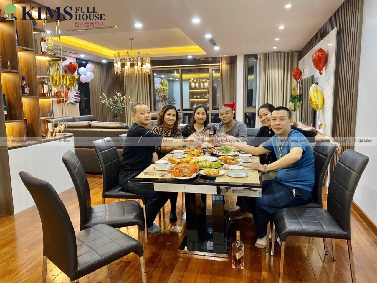 Gia đình chị Nguyễn Hải Yến – Gia Lâm đã lựa chon nội thất Kims Full house để thắp lửa cho tổ ấm của mình. Bao gồm Sofa Royal 116, bàn trà 1008, bàn ăn 1409, ghế ăn 1327, giường 791, kệ góc 1008